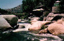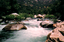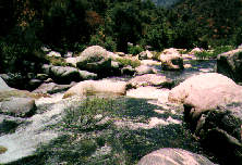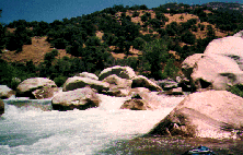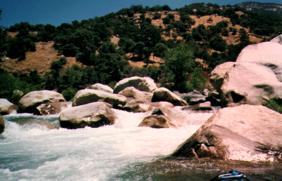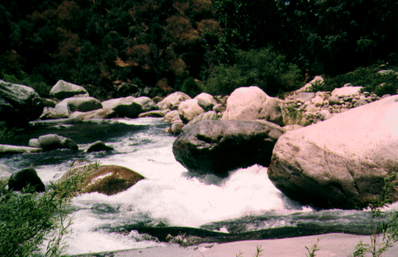 To get to the putin, drive down SCE access road 100 yards before park entrance station on Hwy 198. Cross Bridge and go to parking lot of Power Plant. Unload boats etc. and have someone drive your car to the takout. Do not leave your car here as they may lock the gate behind you. If the gate is closed at Hwy 198 unload here and carry 1/4 mile to putin. There is no parking anywhere near this access road. The few parking spots at the park entrance station are for "park employees and emergency vehicles only". An alternate Put-in is 1/4 mile further upstream at the Indian Head turnout in Sequoia National Park. A short trail drops 100 feet down to the river. This Put-in requires running or portaging the SCE diversion dam 200 yards below the Put-in as well as $20 park entrance fee or $30 for an annual park pass.