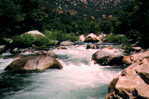 Look upstream at Hospital Rock Section (Class 5+) or the Ash Mountain Section (Class 5)